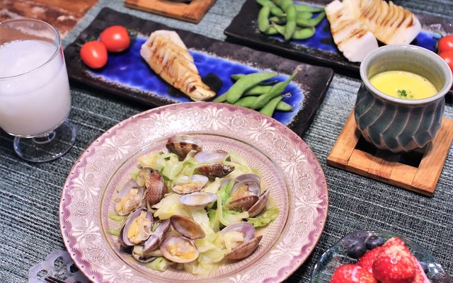 あさりとキャベツの酒蒸し献立 丼助 Snapdish スナップディッシュ Id Qbv8ga