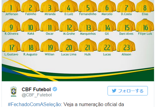 王国復活へ ブラジル代表w杯メンバー 背番号発表 日本最大級の本田圭佑応援ブログ