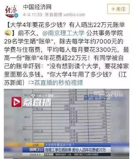 大学4年究竟要花掉多少钱 一位大学生晒出22万元 天价账单