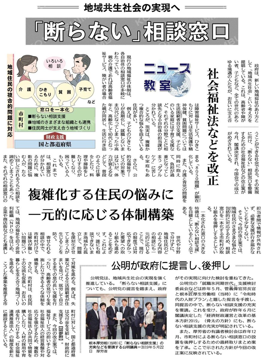 木下 広 Auf Twitter 断らない相談窓口を推進 貧困 子育て 介護 引きこもり8050問題等複雑化する住民の悩みを 縦割りを廃して一元的に応じる 断らない 体制 社会福祉法 の改正を目指します 公明新聞電子版 2020年03月29日付 Https T Co Mxwmfo6hkr Https