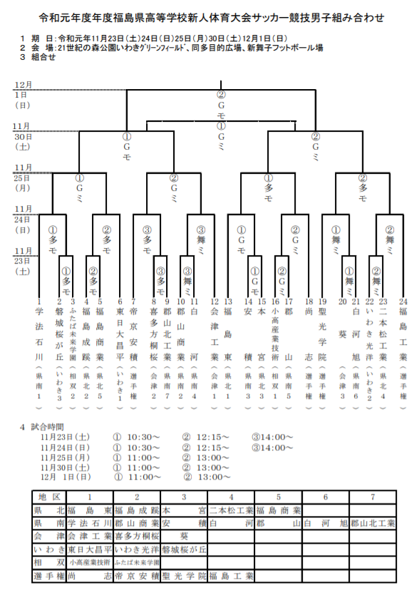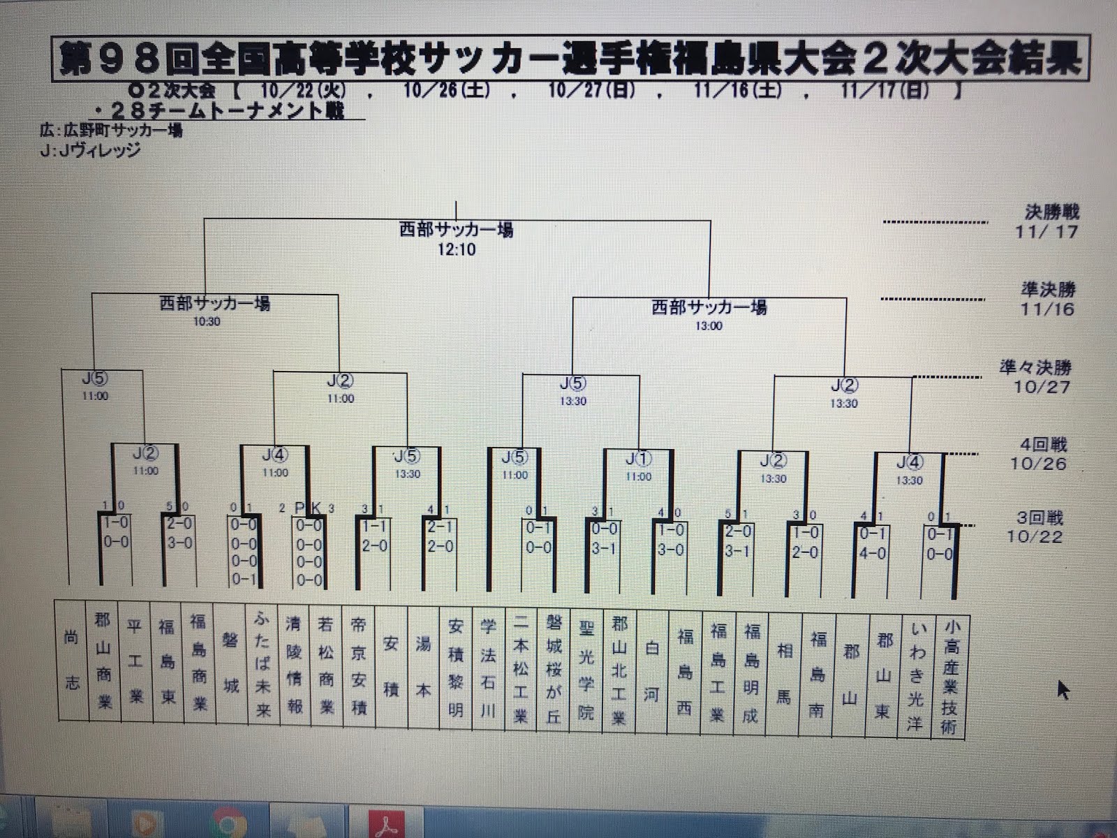 福島県高校サッカー試合速報 選手権2次大会組み合わせ