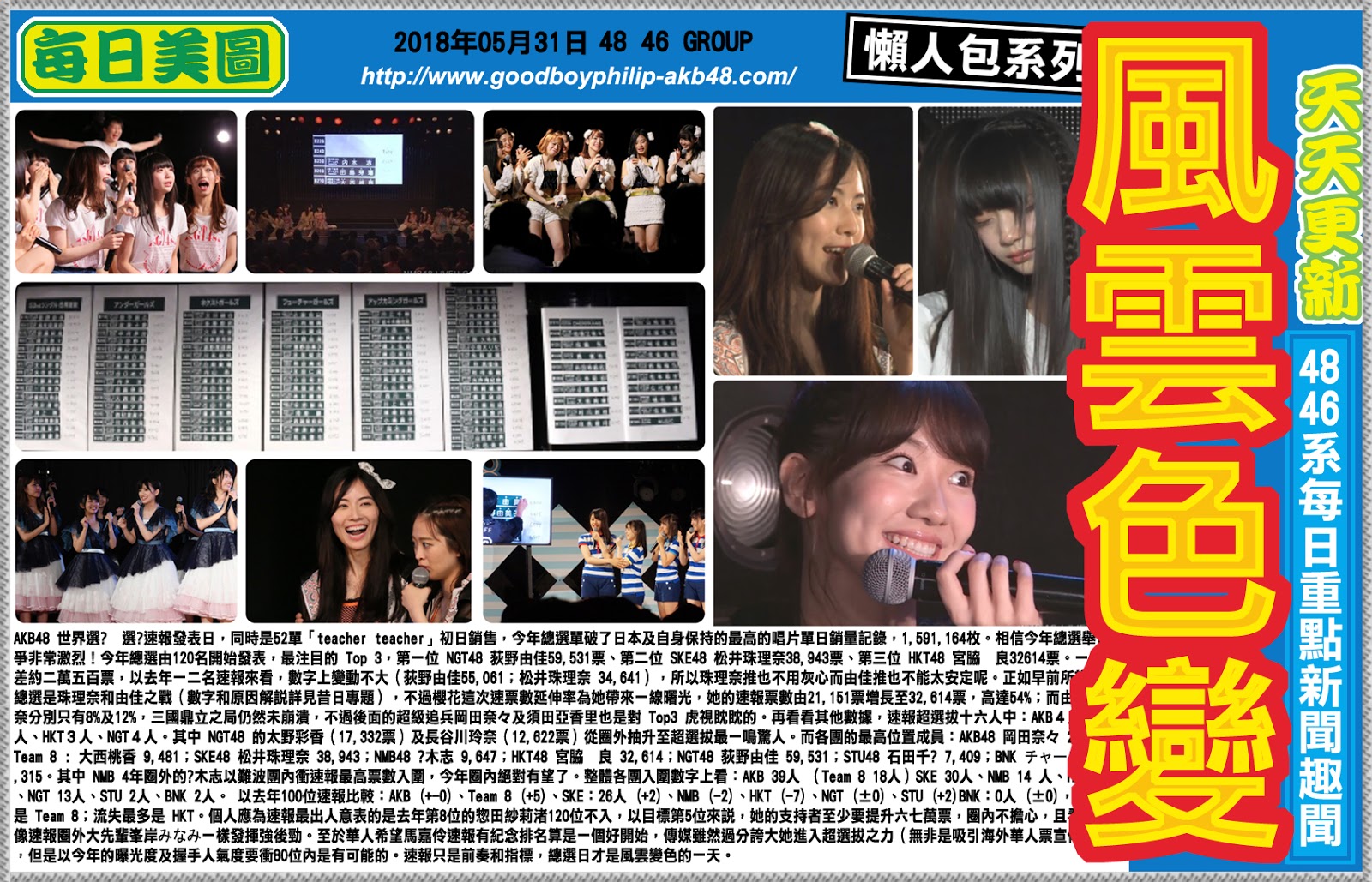 好孩子philip 超級日本後樂園 Akb48 新聞20180530 53單世界選抜総選挙速報發表