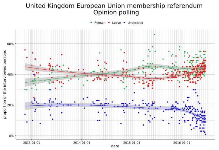 S O C I A L I S T A On Twitter イギリスのeu離脱世論調査 残留が優勢だった時期は意外に短く 更に投票日直前に離脱に追いつかれてしまっていた 世論調査では残留が優勢だったのに 世論調査が外れて は誤り 緑が残留 赤が離脱